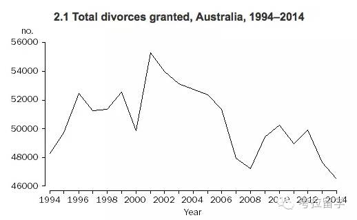 根据澳大利亚数据局的数据显示,在2012年有40%的婚姻以离婚收场,而2014年,有46498对夫妻最终选择离婚,相比2012年,下降了3个百分点。。这可是良好的态势啊。。