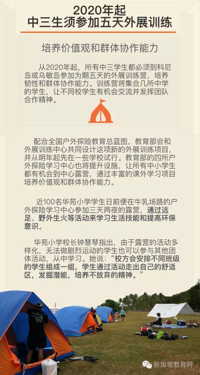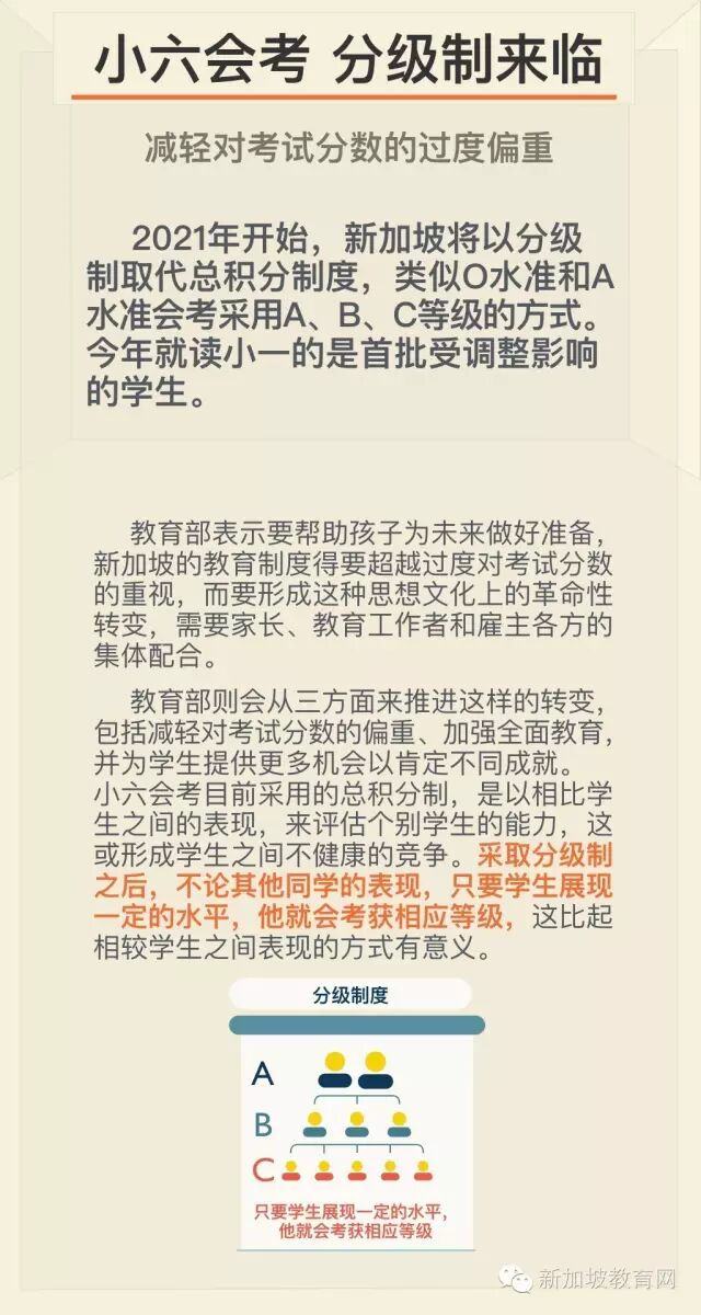 新加坡小学将采用新的分级制度,以等级的划分方式来取代刻板的分数教育;同时新加坡的中学生则将强制性的参加户外扩展课程;